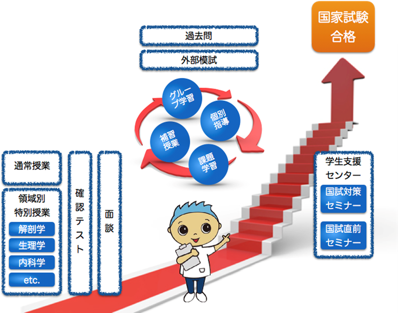 「万全の体制で国家試験に望むことで全員の合格を目指します。」